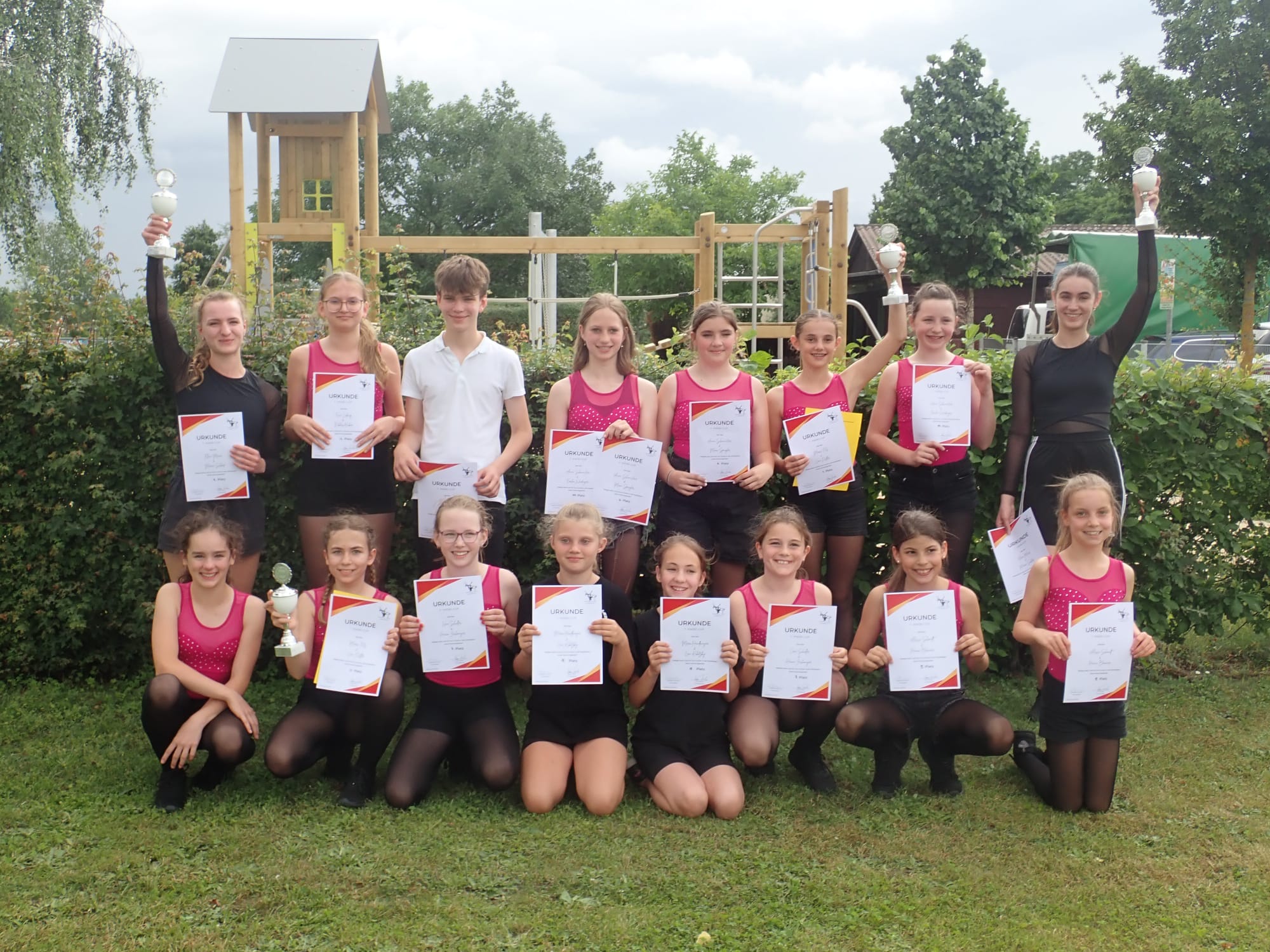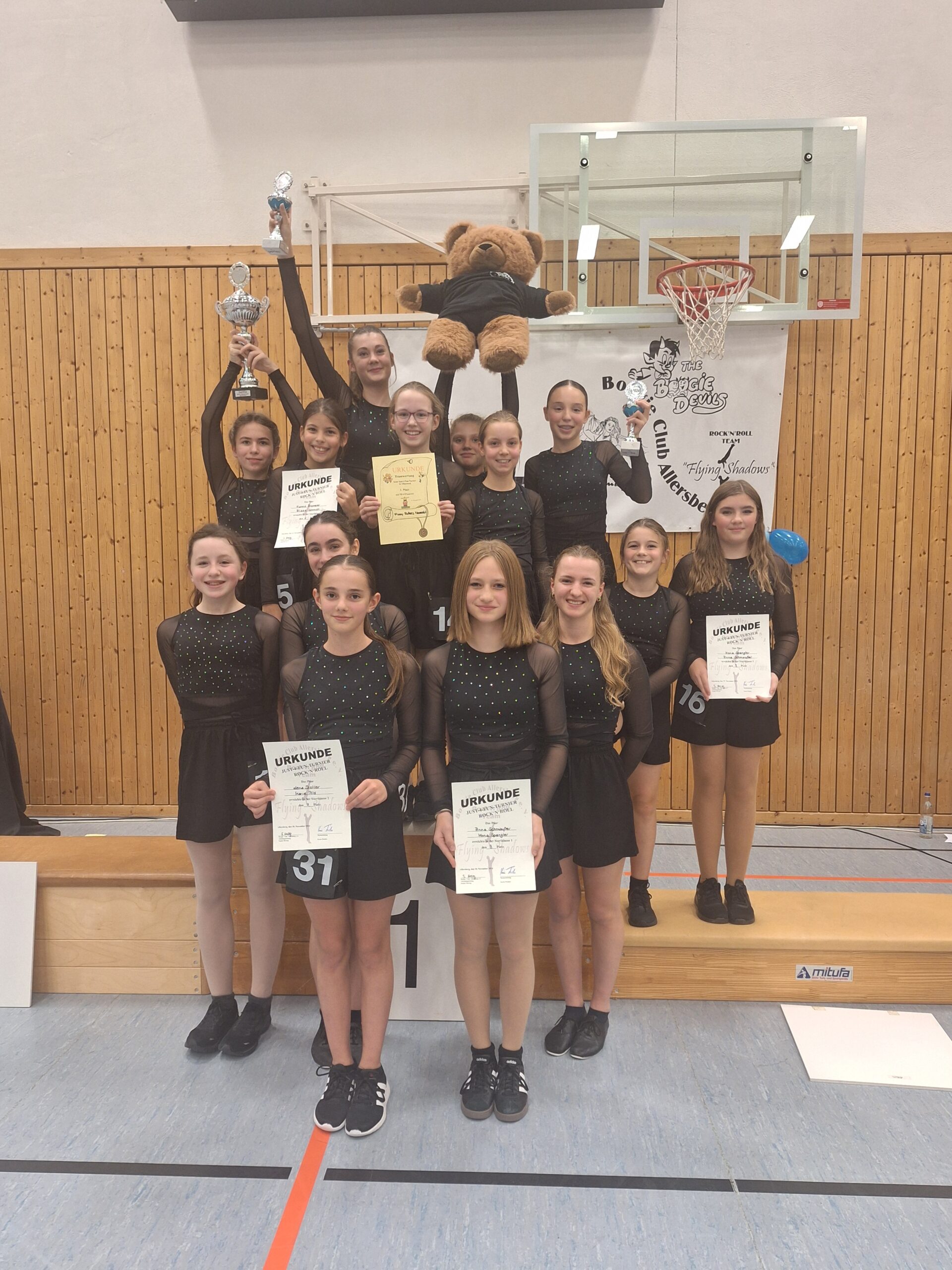 Wer Lust auf ein bisschen Wettbewerb hat, kann nach den Basics auch bei Just-for-Fun-Turnieren in Nordbayern mitmachen. Dort erweitern wir die tänzerischen und turnerischen Skills, bauen coolere Choreos und wagen erste (Partner-)Akrobatik. 🤸♀️🤝
